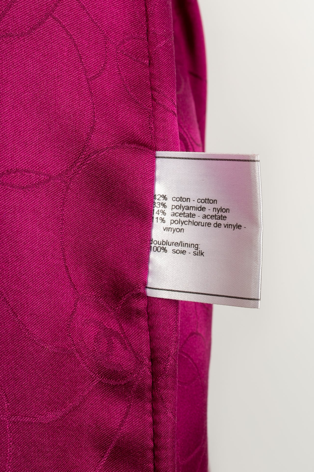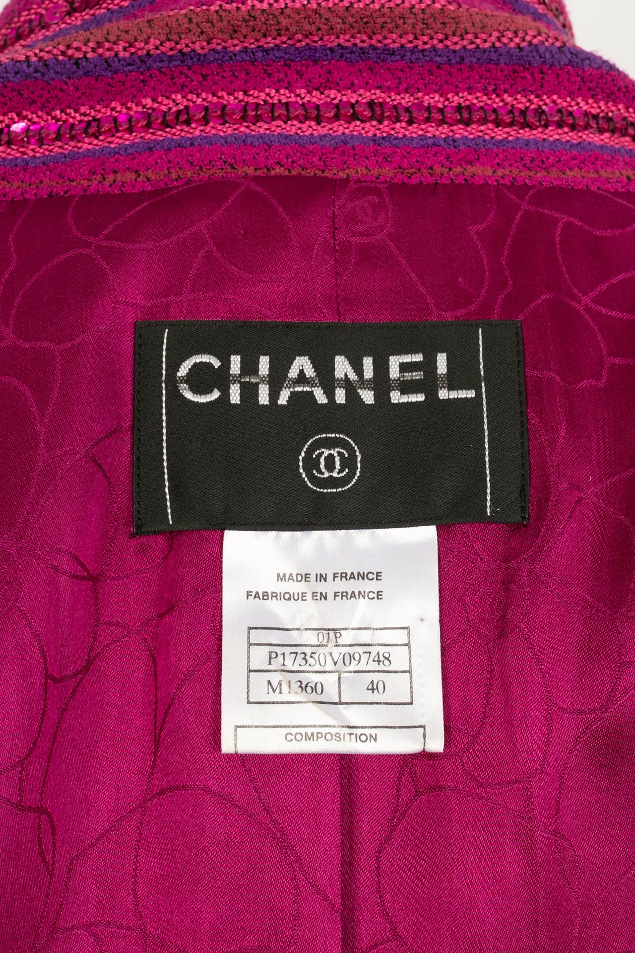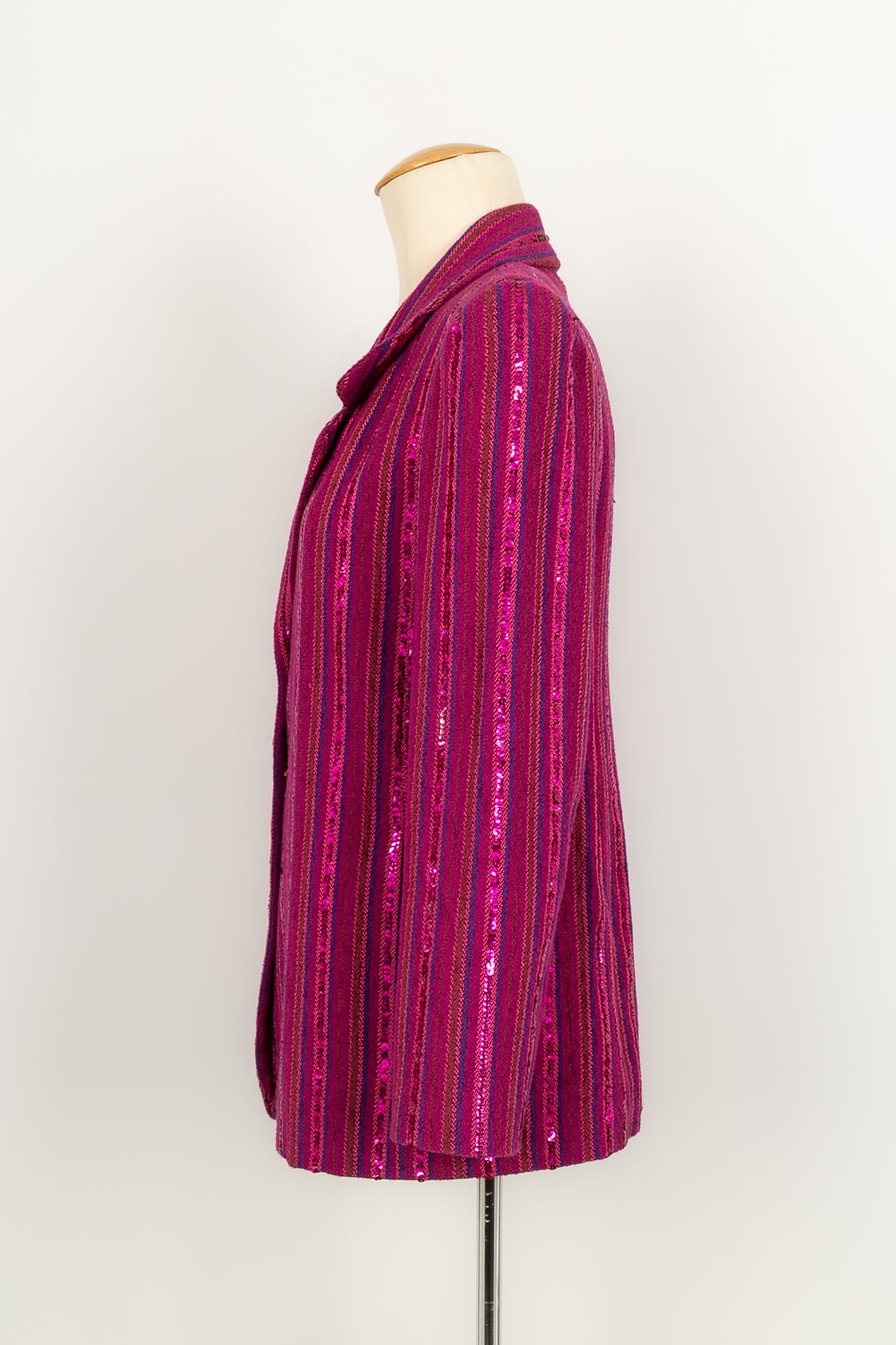 CHANEL -(Made in France) Veste en coton violet cousue de paillettes. Doublure en soie. Taille 40. Collection Prêt-à-Porter Printemps-Eté 2001.