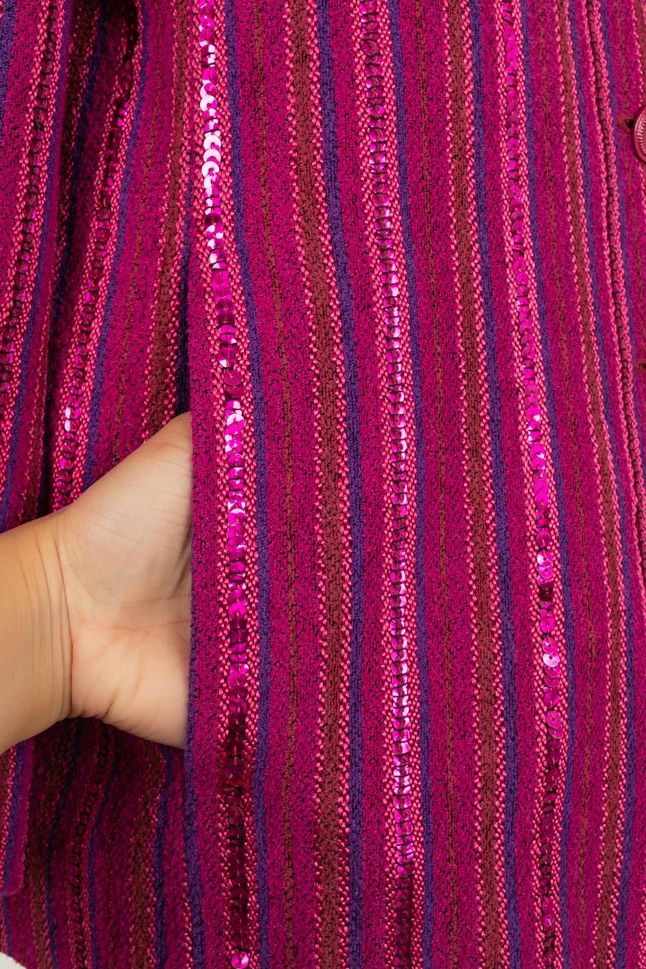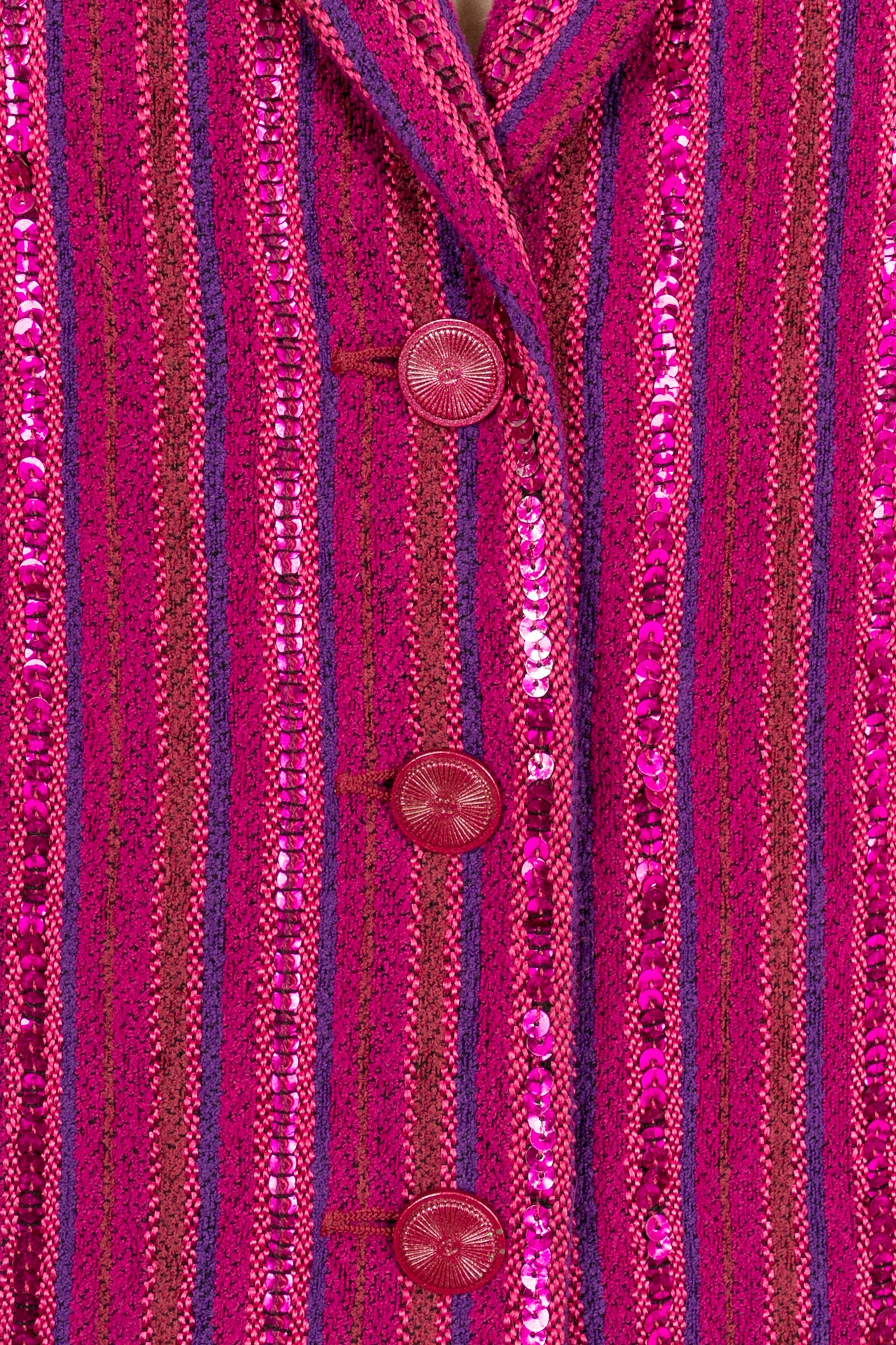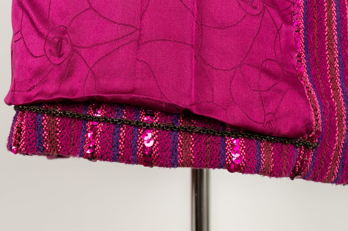 CHANEL -(Made in France) Veste en coton violet cousue de paillettes. Doublure en soie. Taille 40. Collection Prêt-à-Porter Printemps-Eté 2001.