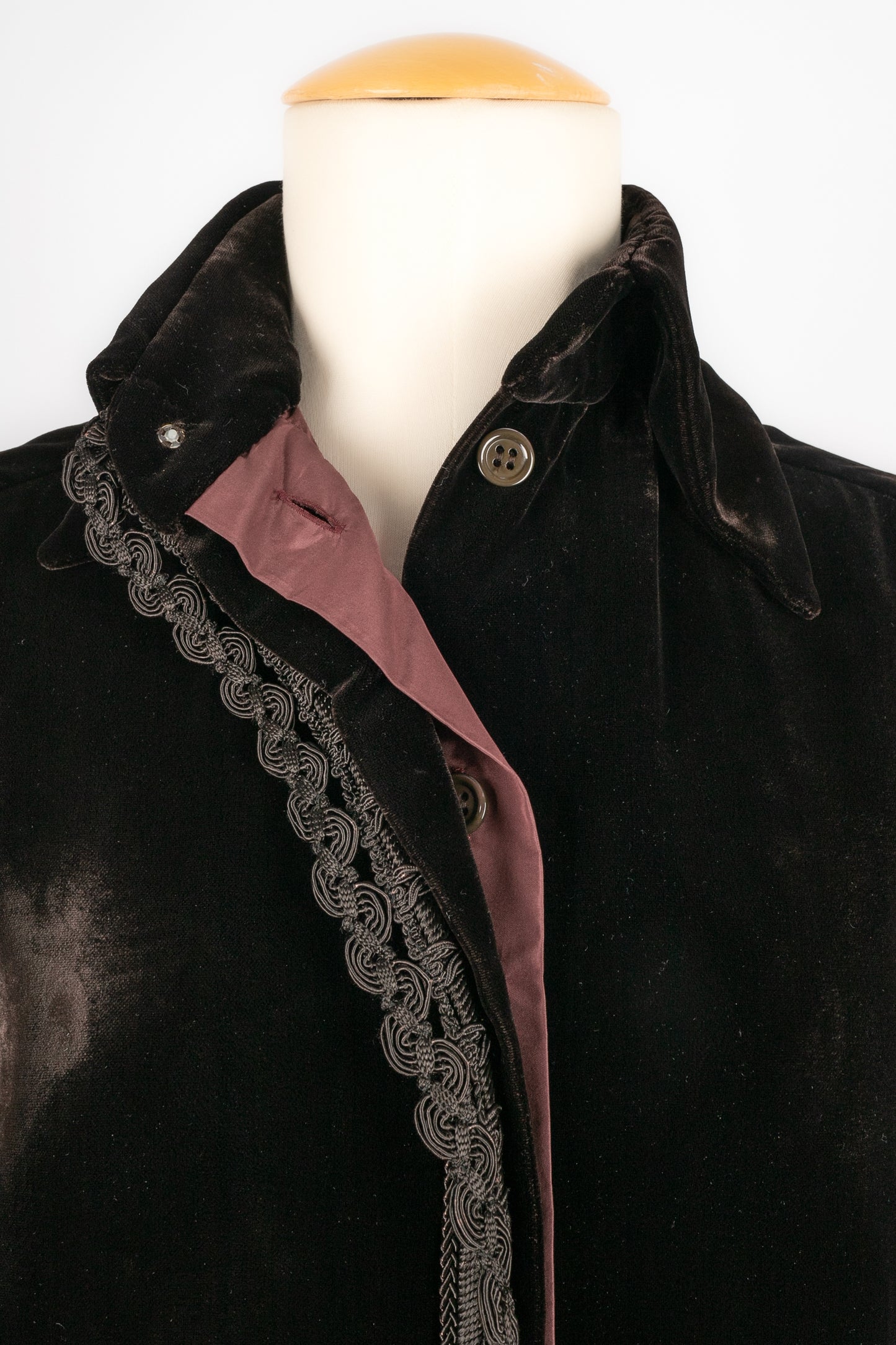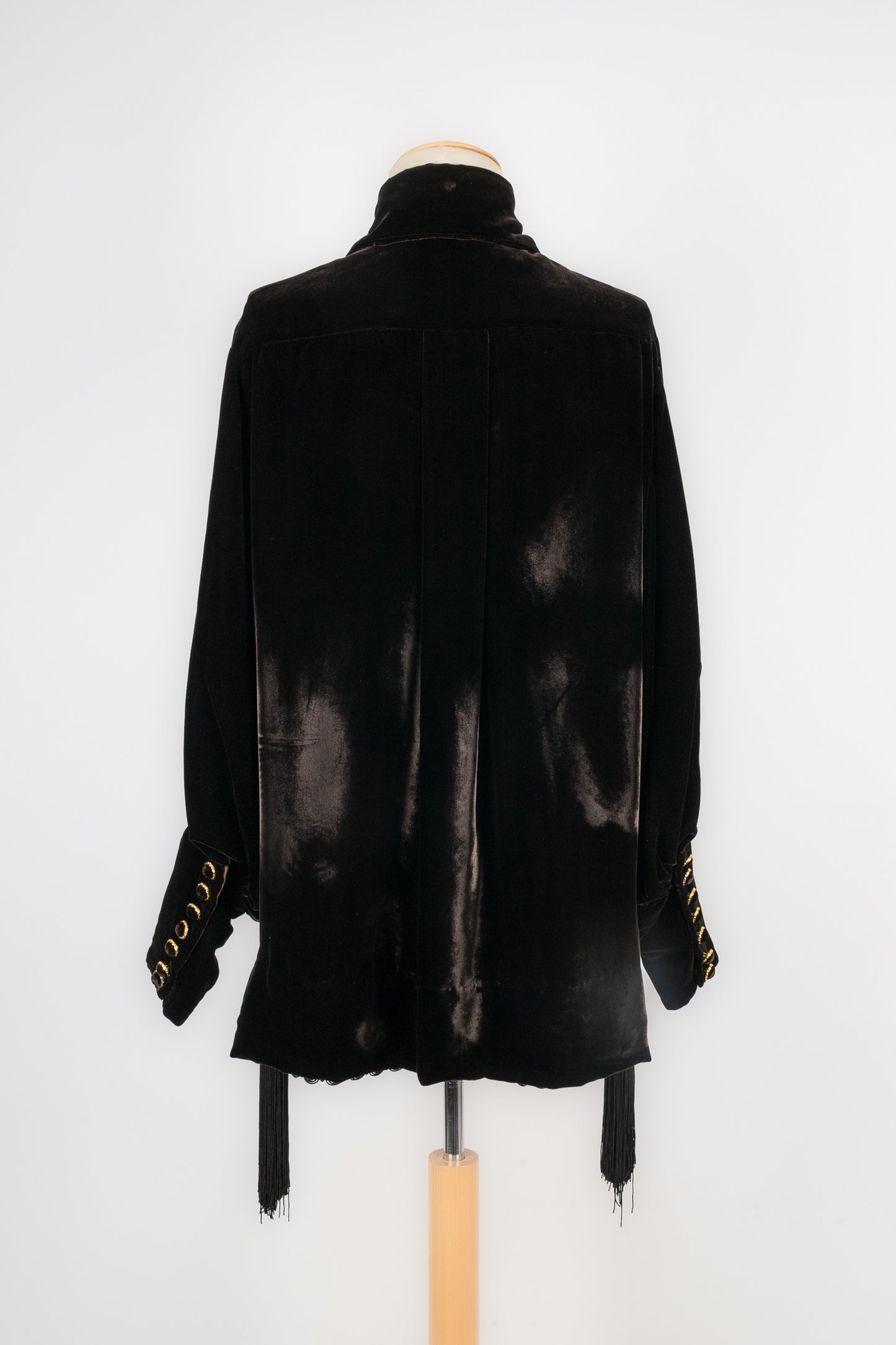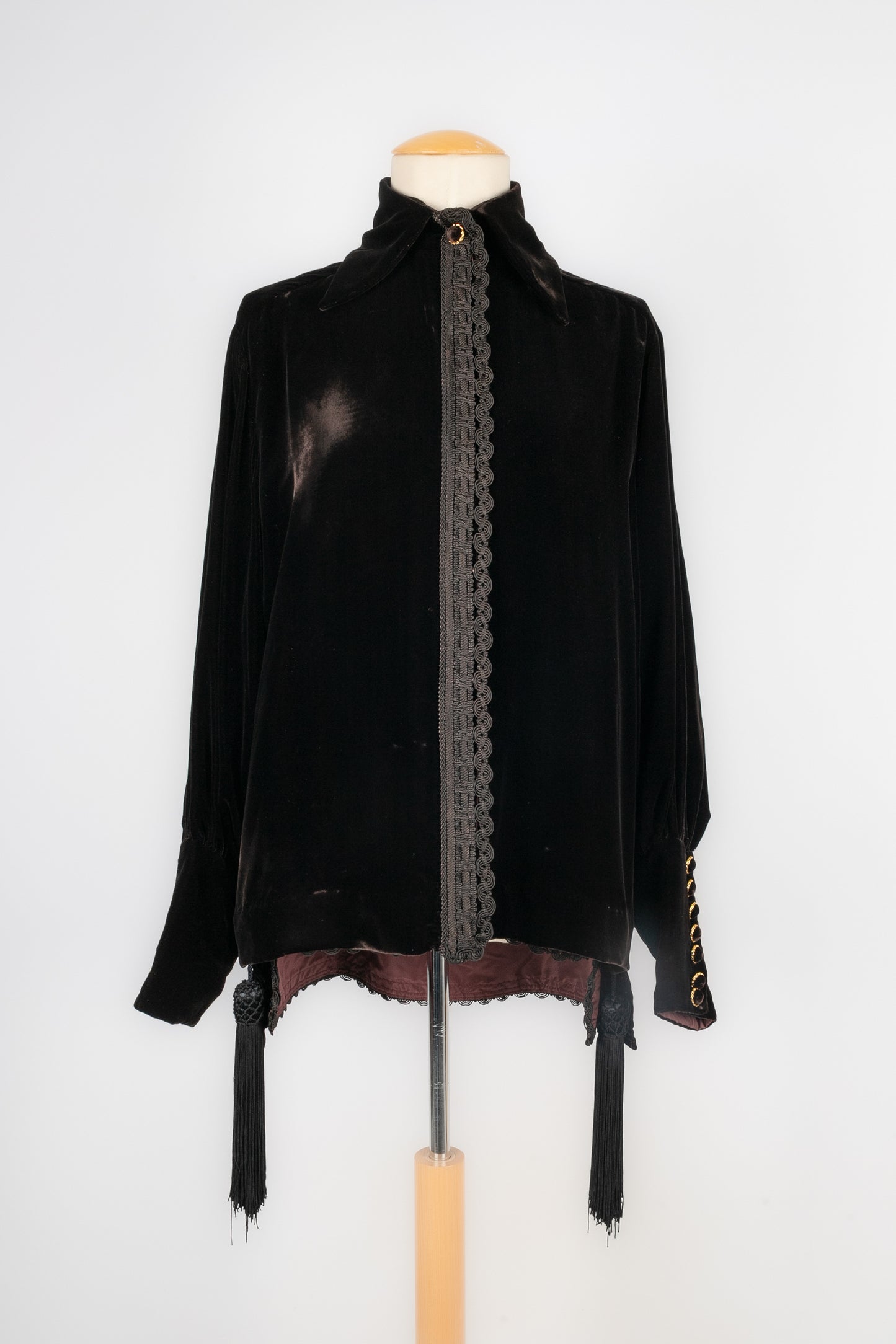 DIOR -Veste en velours décorée de passementerie et retenant deux pompons. Pas de taille indiquée, elle correspond à un 36FR. Collection Automne-Hiver 1993, sous la direction de GianFranco Ferré.