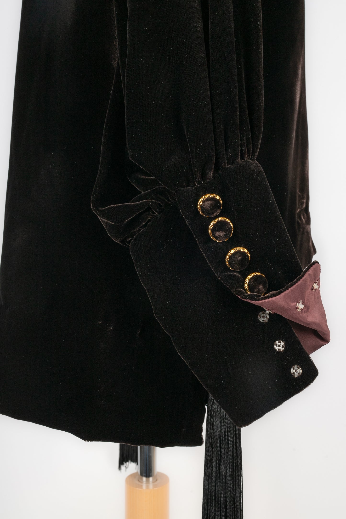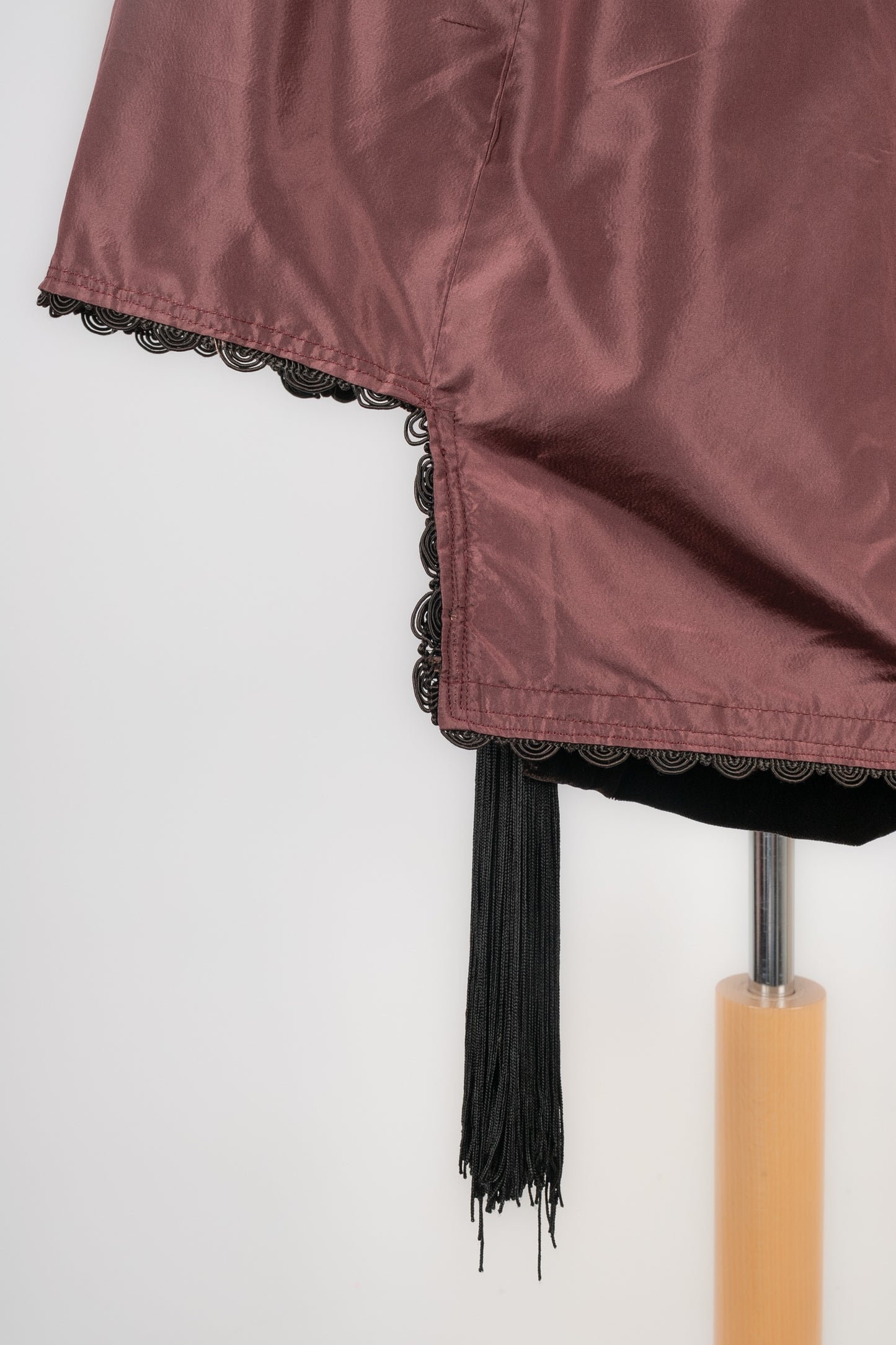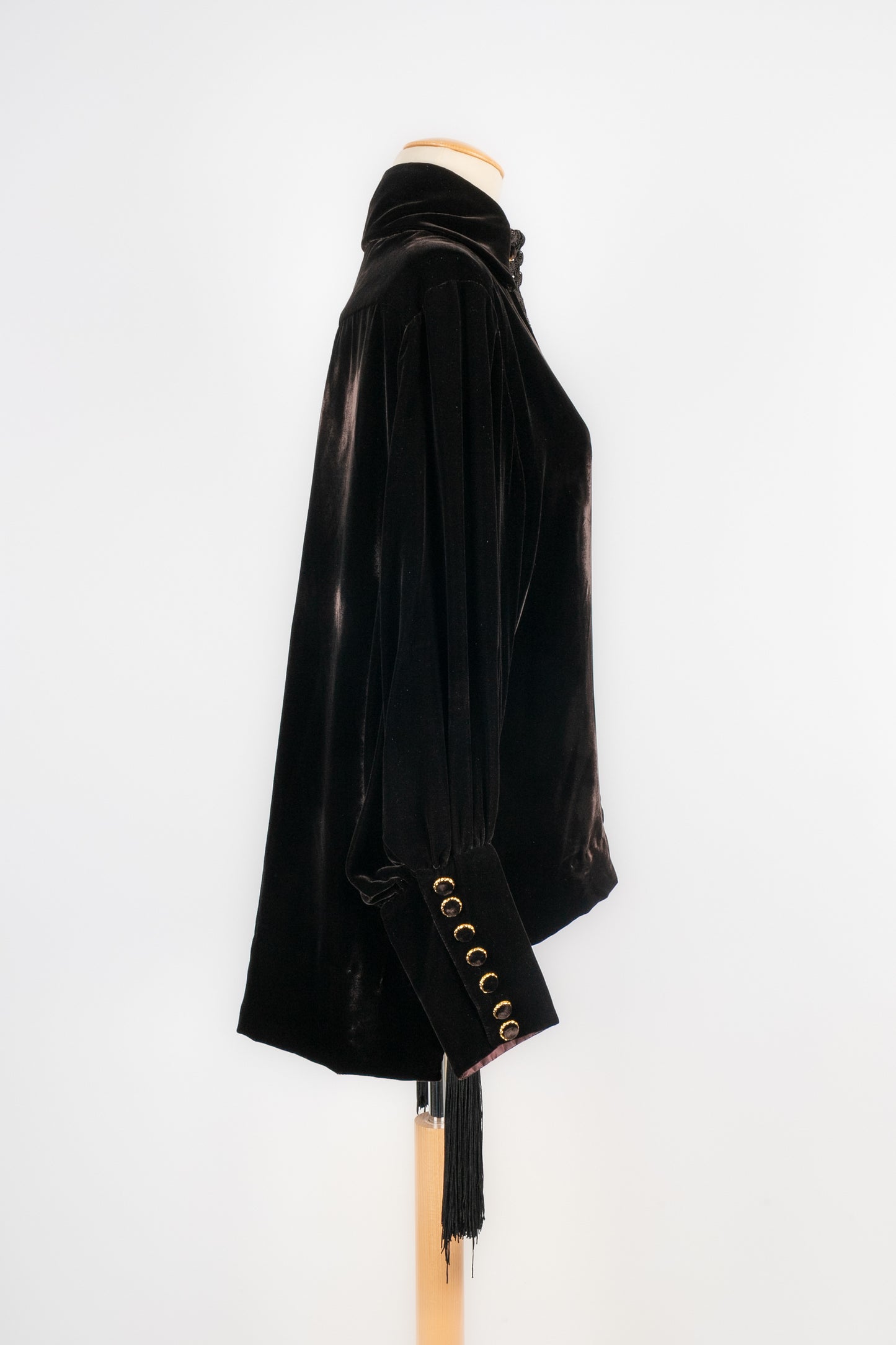 DIOR -Veste en velours décorée de passementerie et retenant deux pompons. Pas de taille indiquée, elle correspond à un 36FR. Collection Automne-Hiver 1993, sous la direction de GianFranco Ferré.