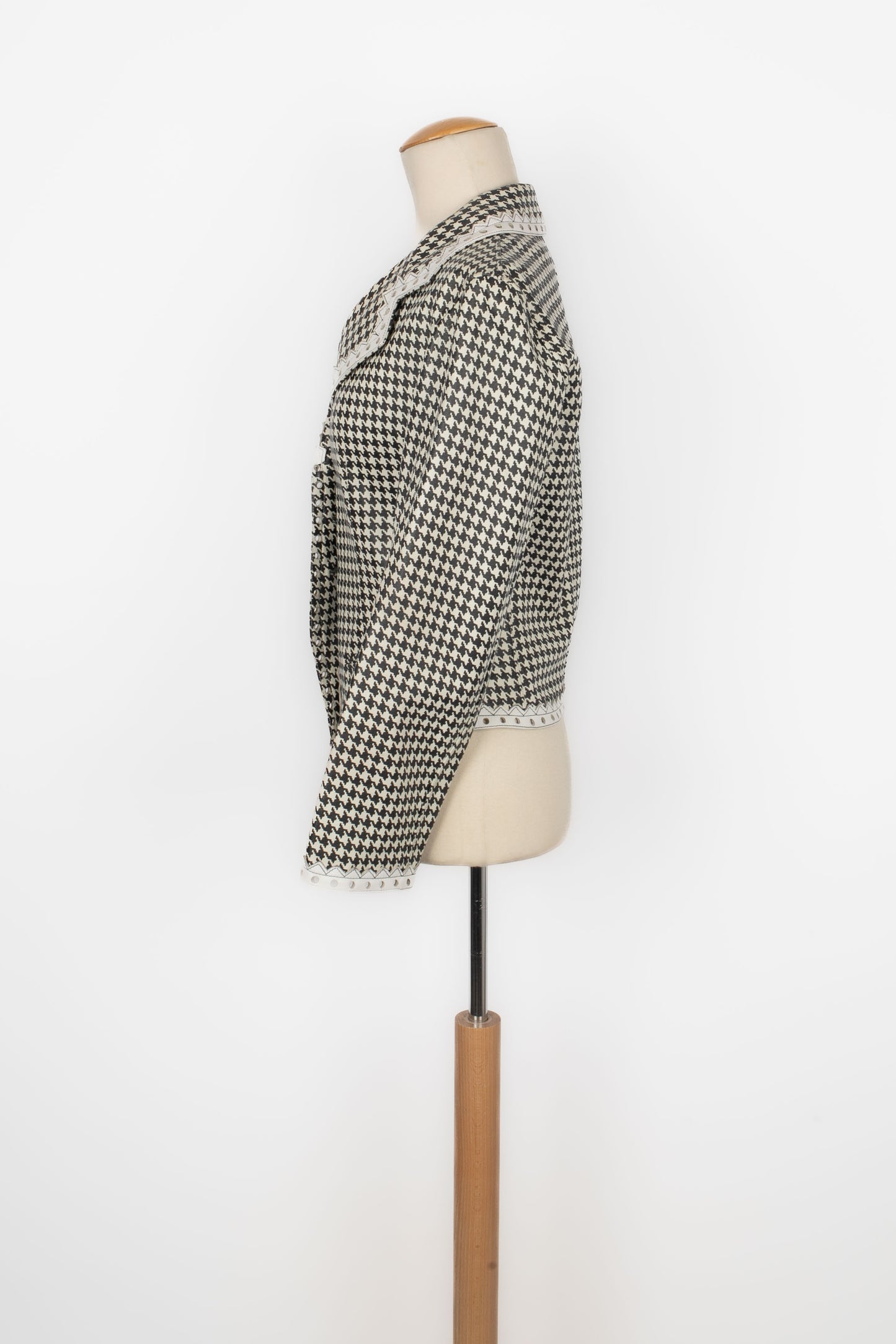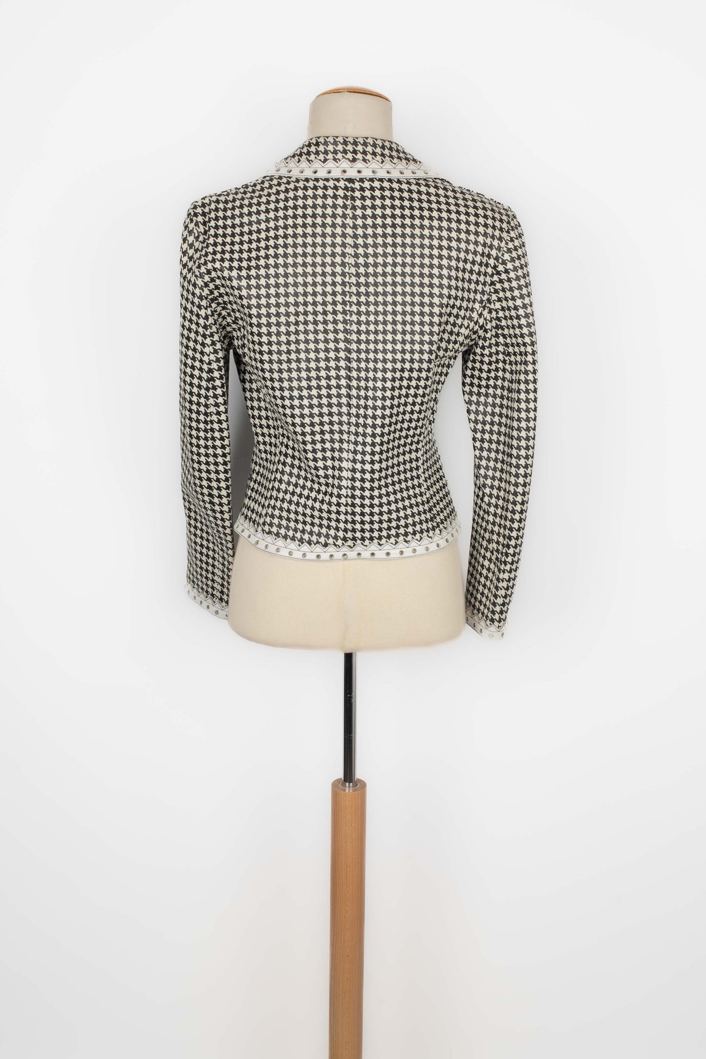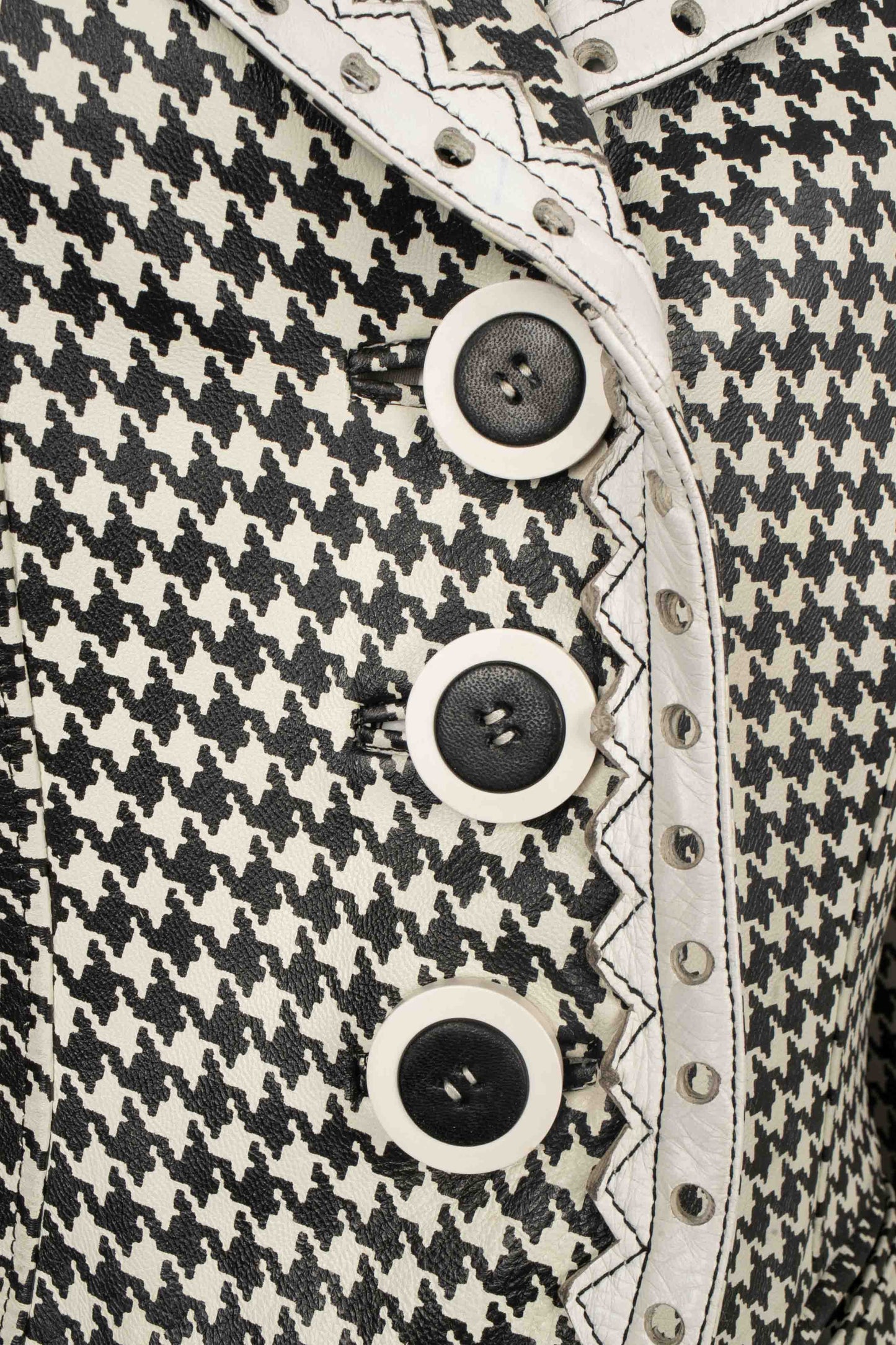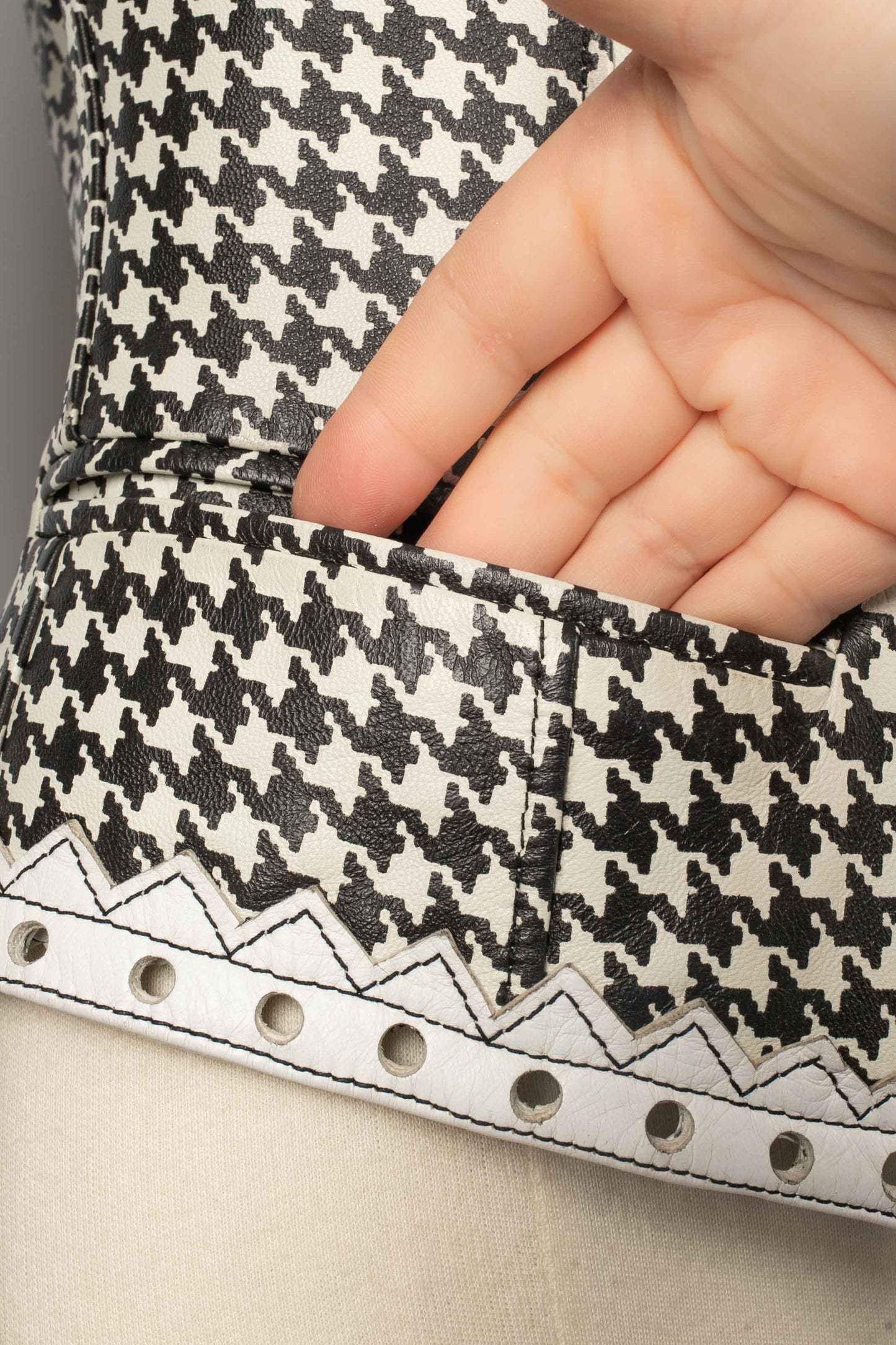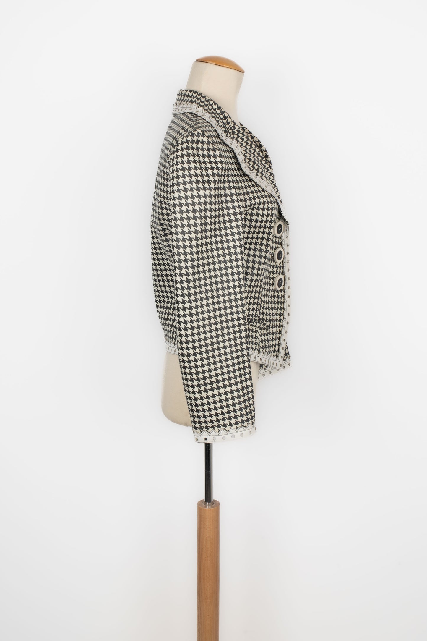 DIOR -(Made in France) Veste en cuir à motifs pied de poule noir et blanc. Pas taille indiquée, elle convient à un 36FR. Collection Printemps-Eté 1995, sous la direction de GianFranco Ferré. Bon état général, à signaler intérieur taché.