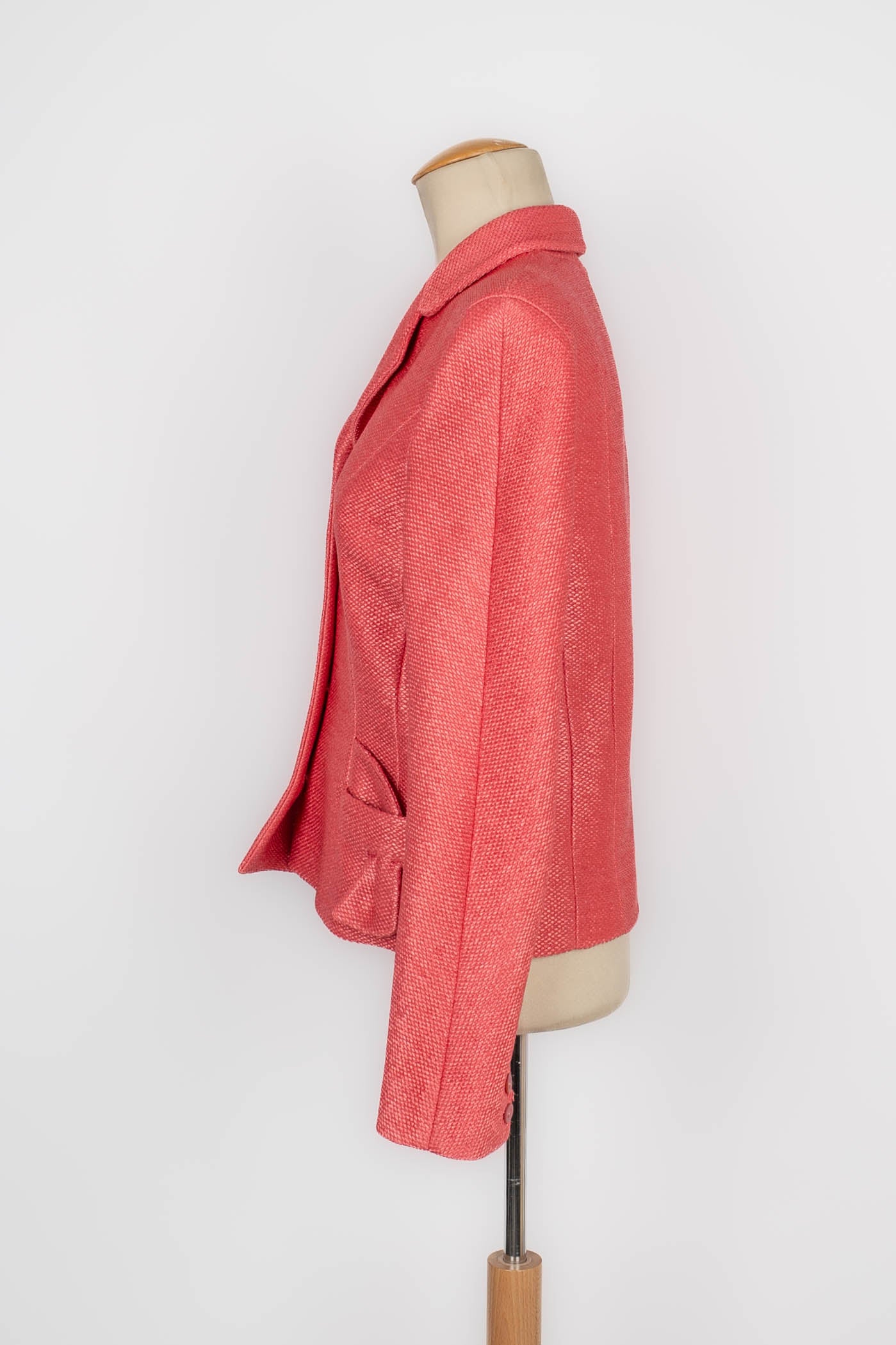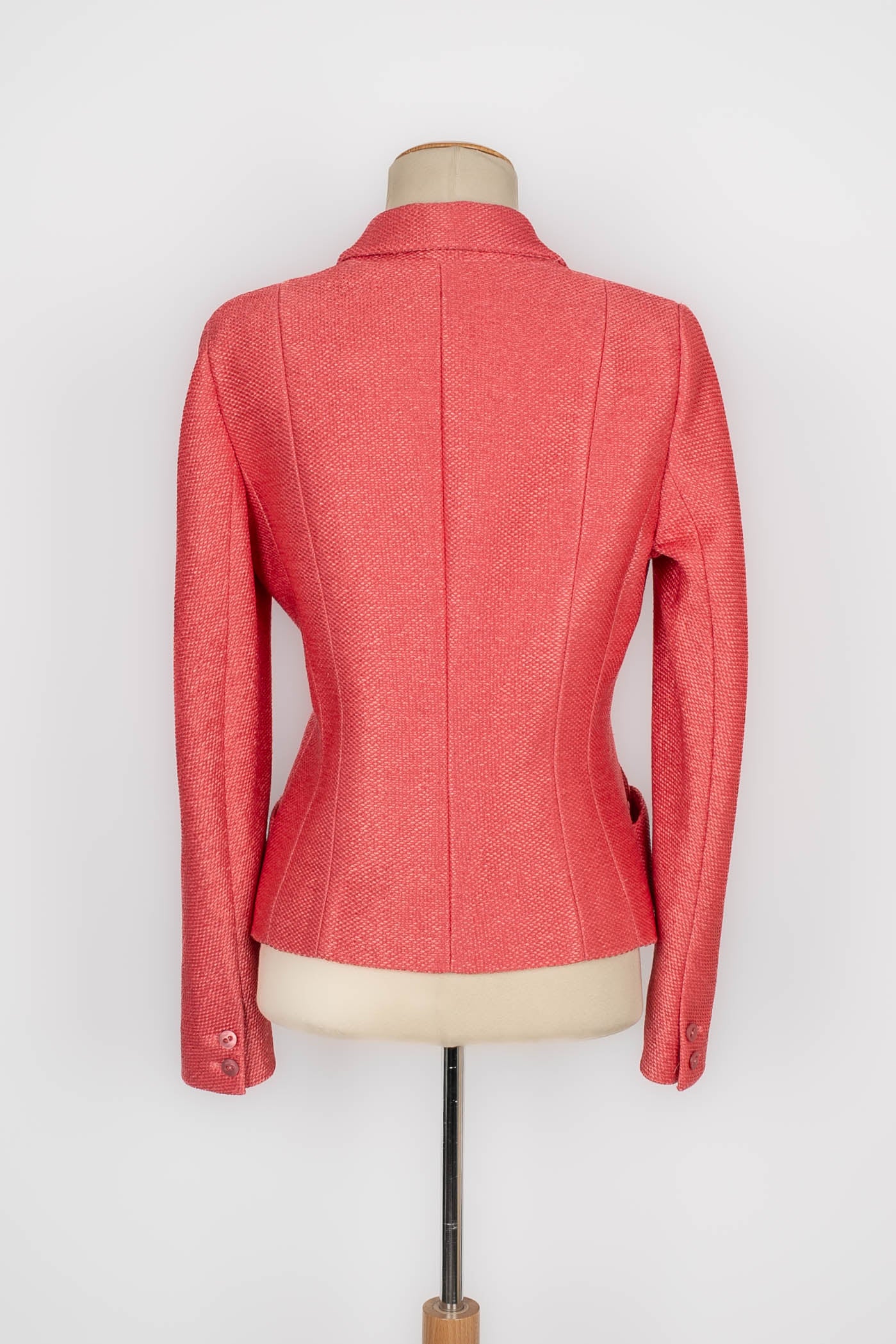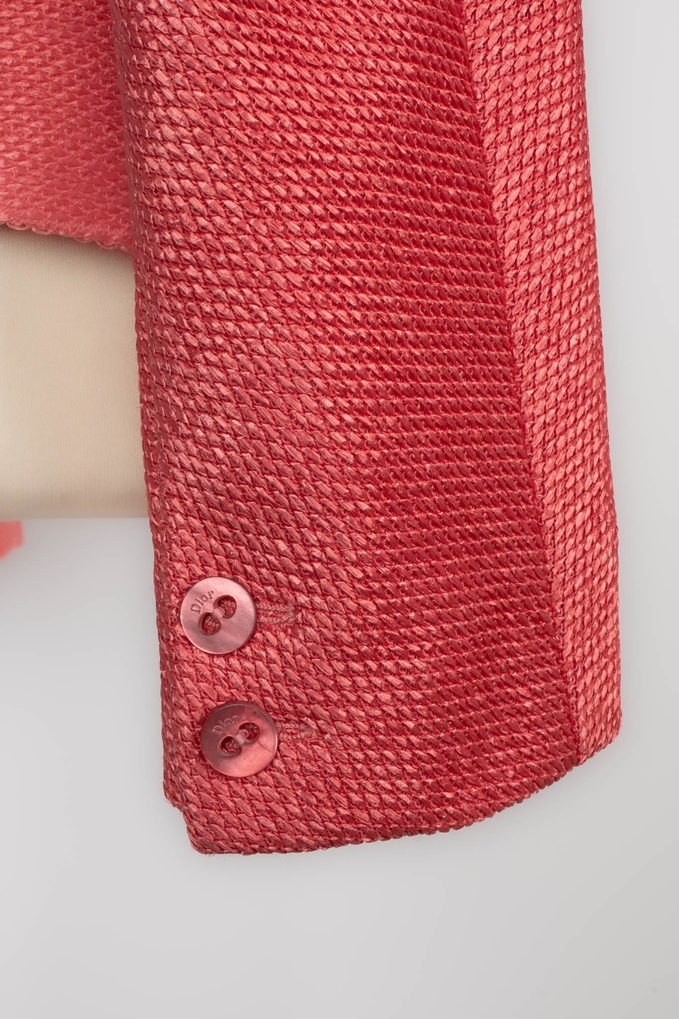 DIOR -(Made in France) Veste en raphia rose et doublure en soie. Collection Printemps-Eté 2006. Taille 40FR.
