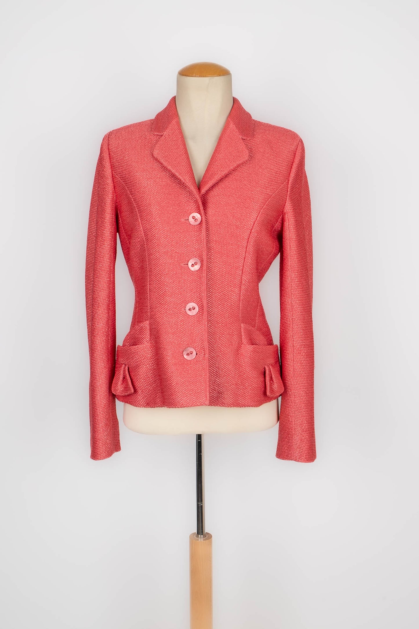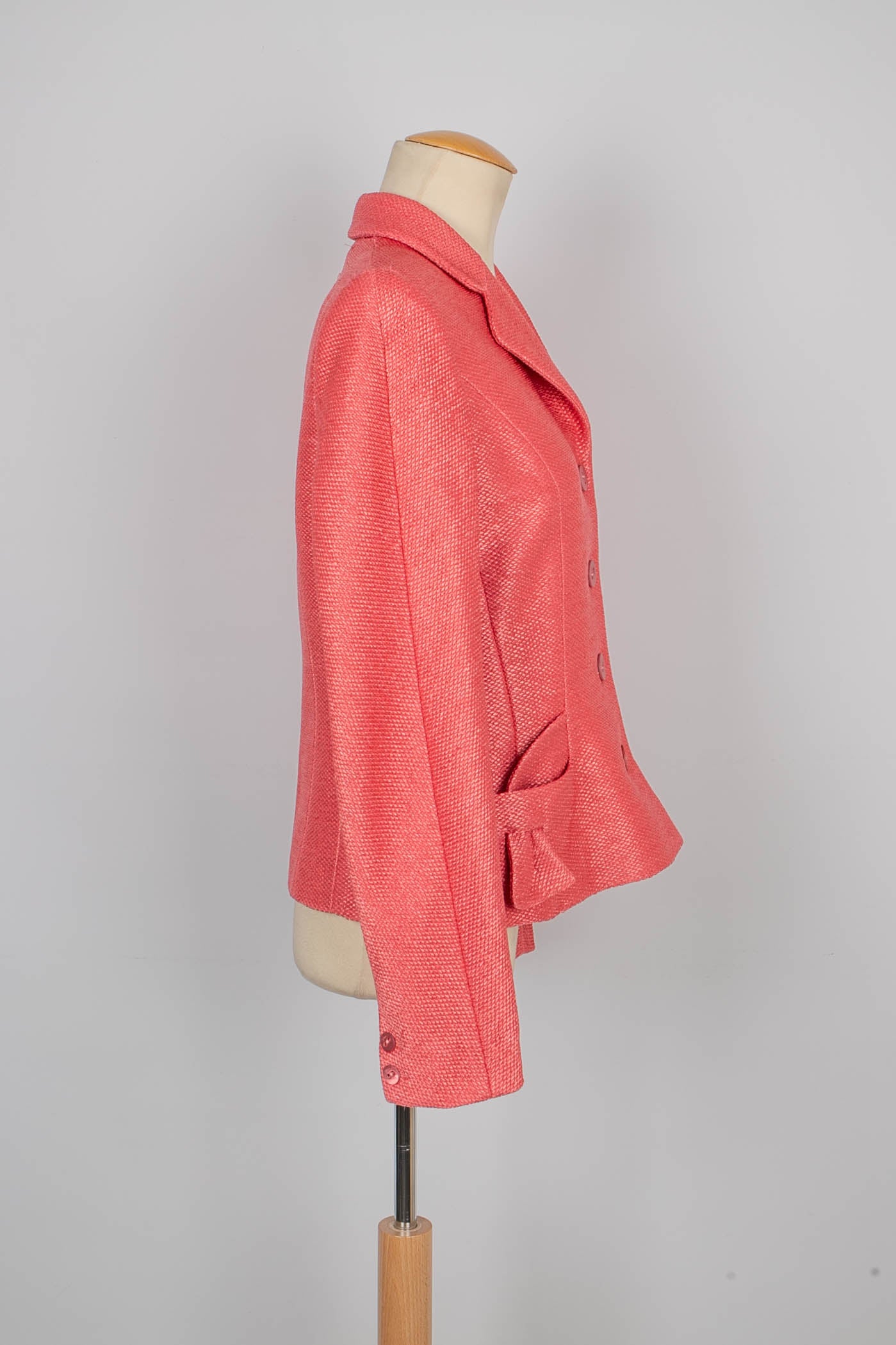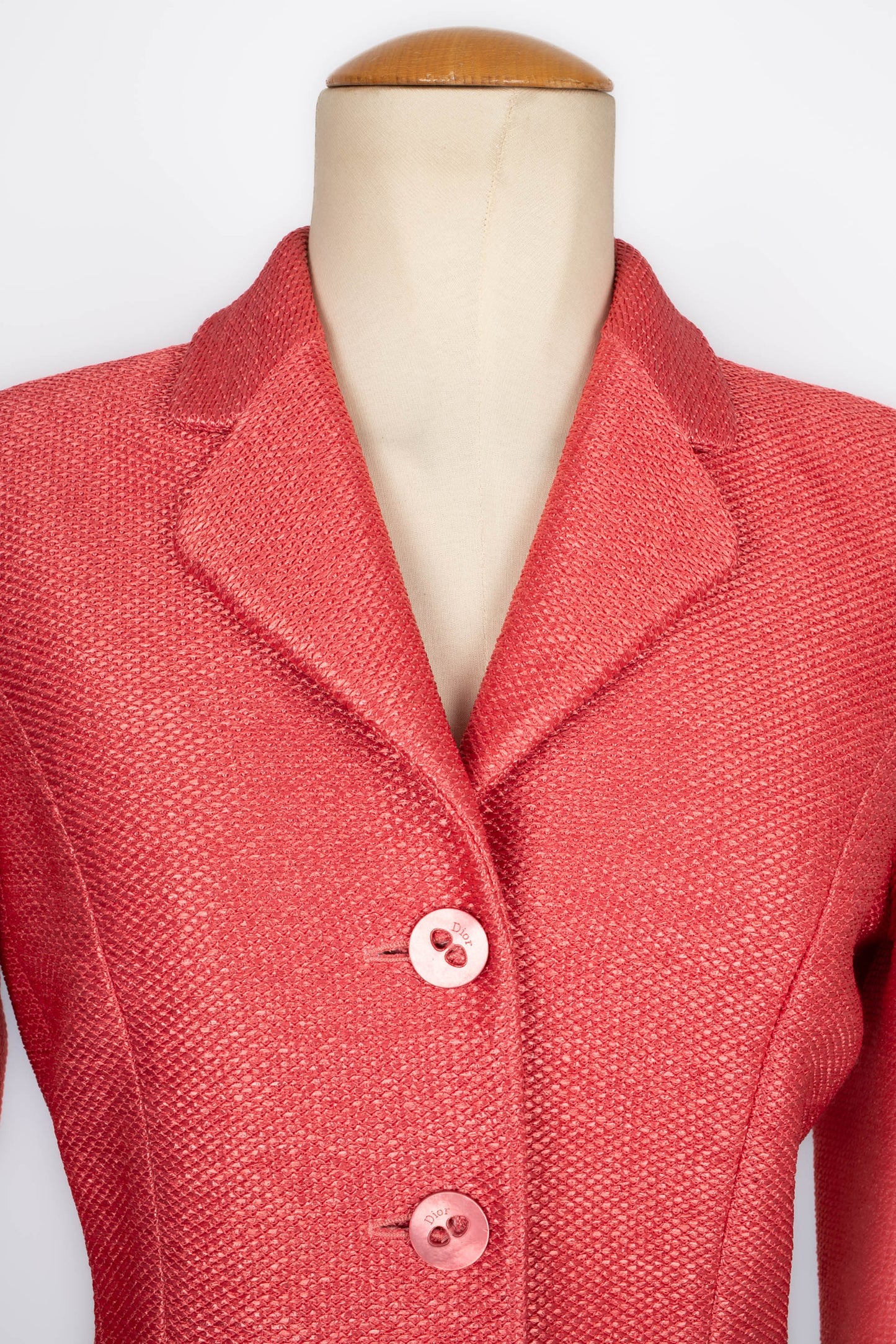 DIOR -(Made in France) Veste en raphia rose et doublure en soie. Collection Printemps-Eté 2006. Taille 40FR.