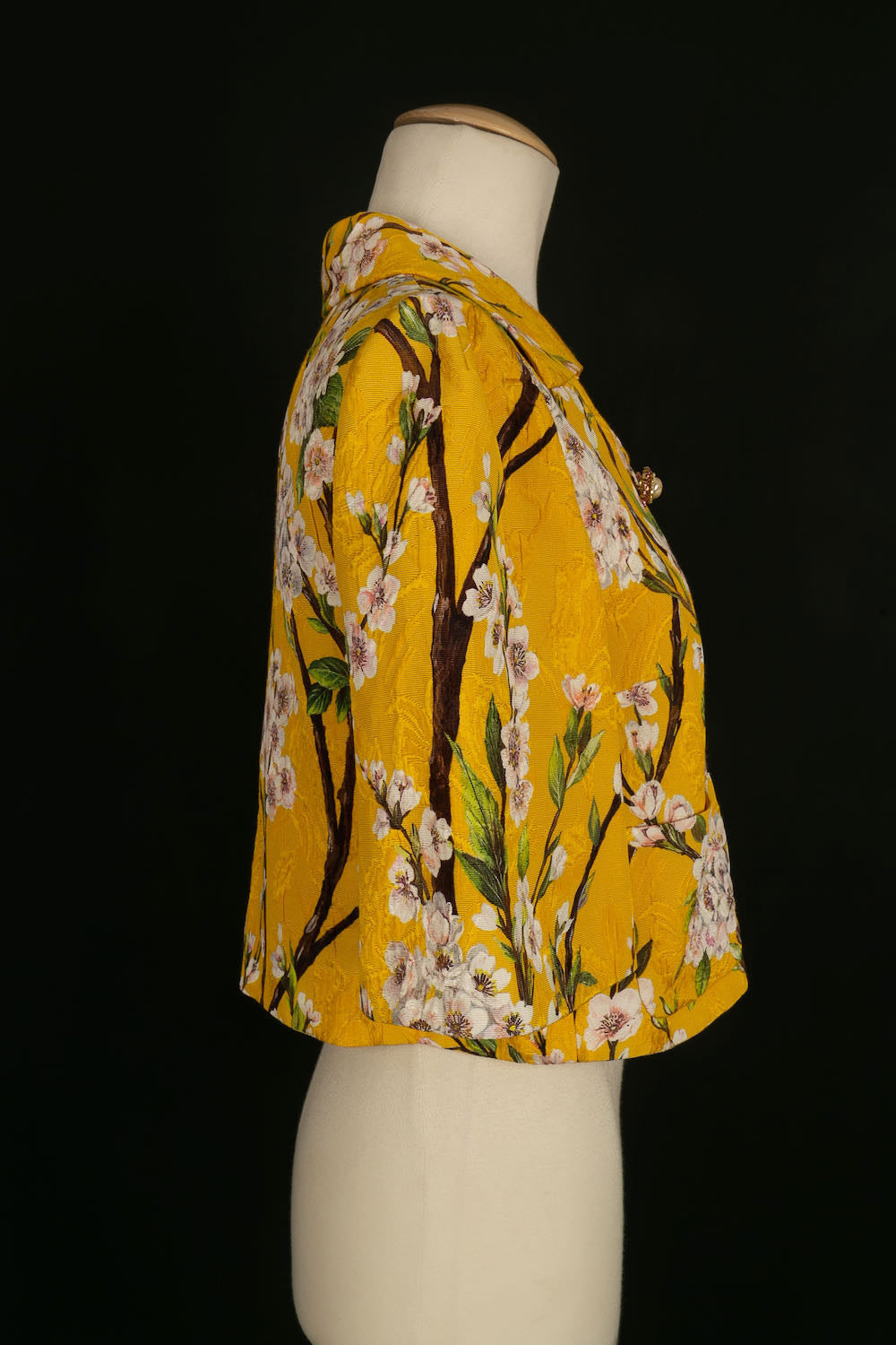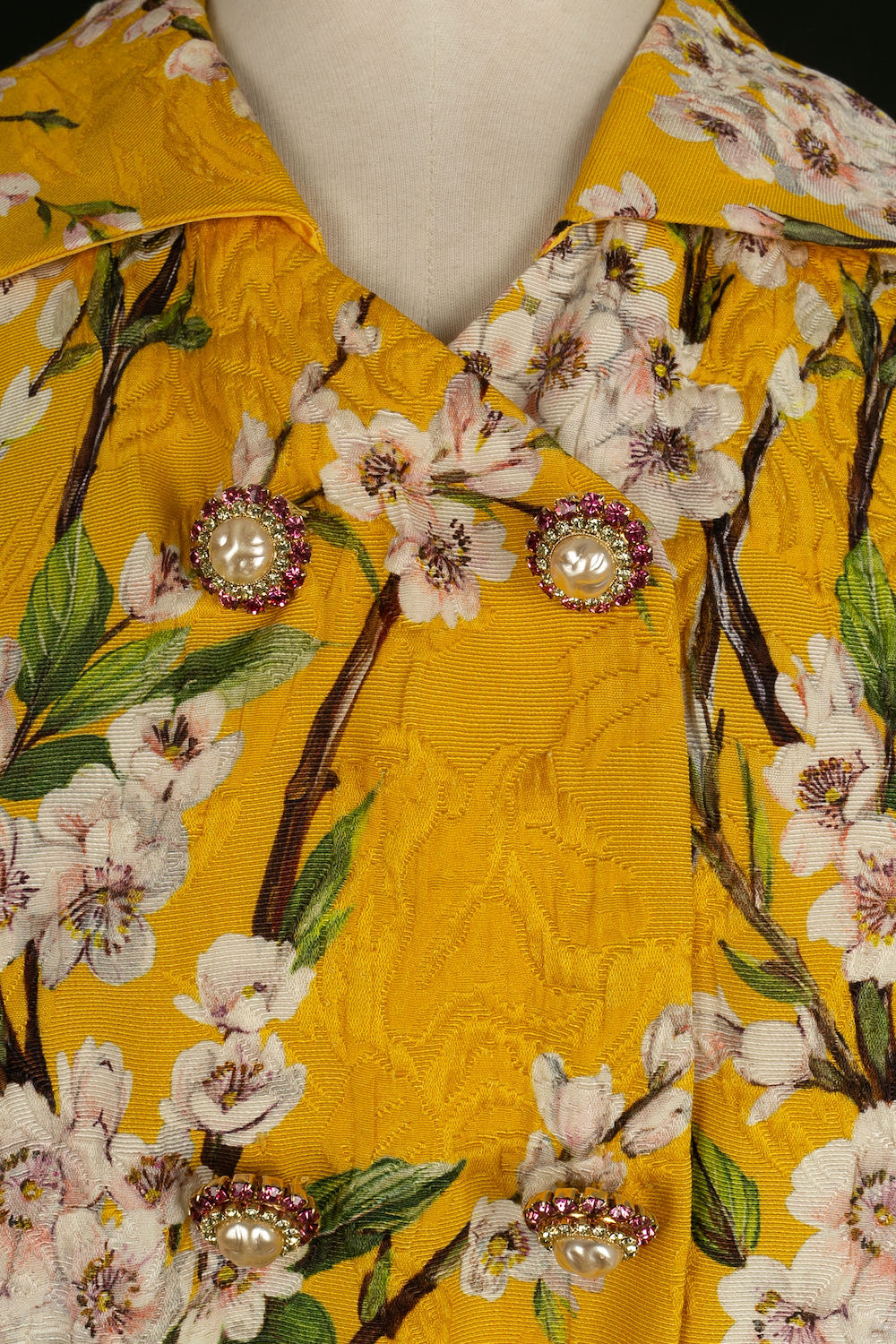 DOLCE & GABBANA -(Made in Italy) Veste en coton fleuri. Taille 42IT. A signaler, présence de tâches sur la doublure.