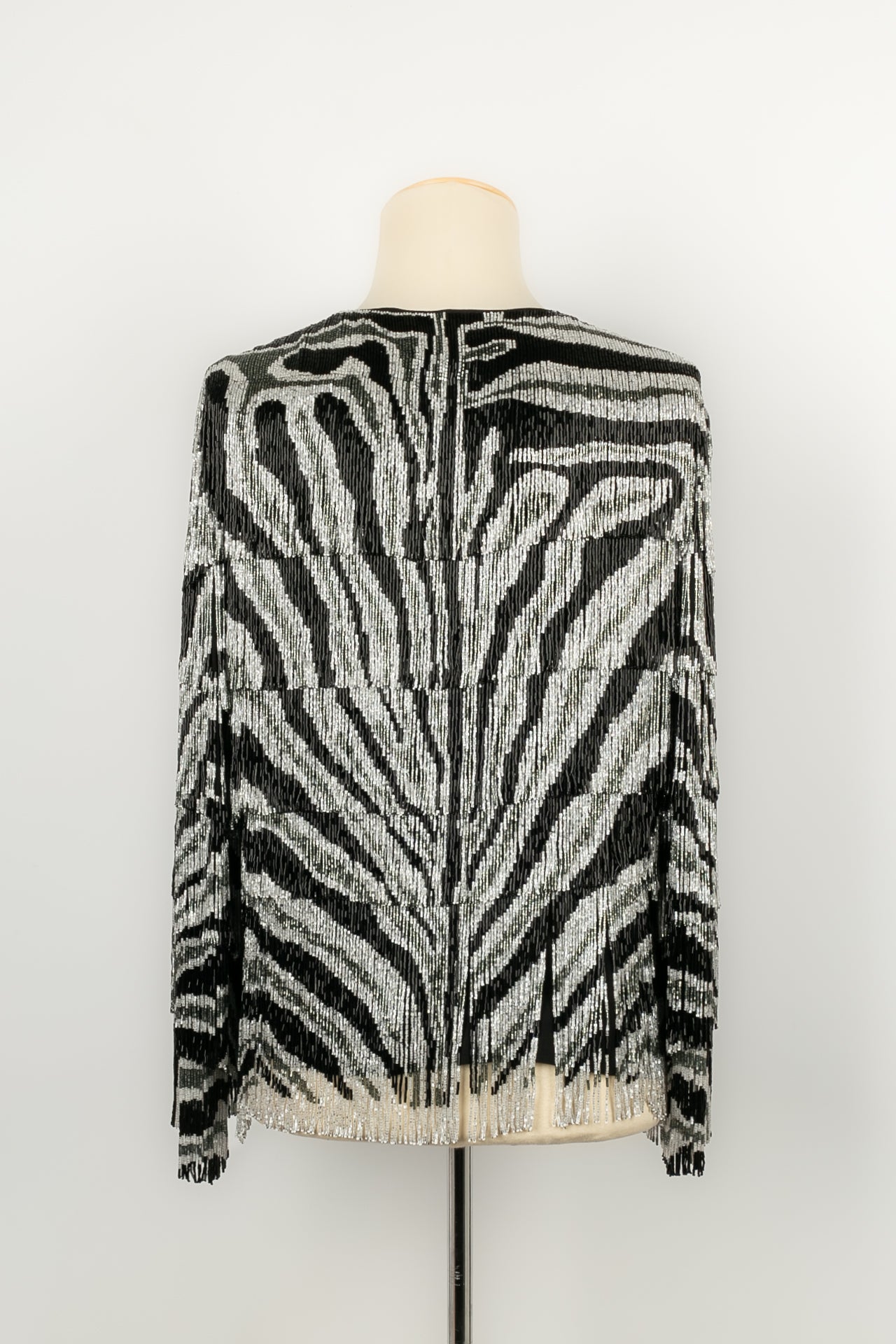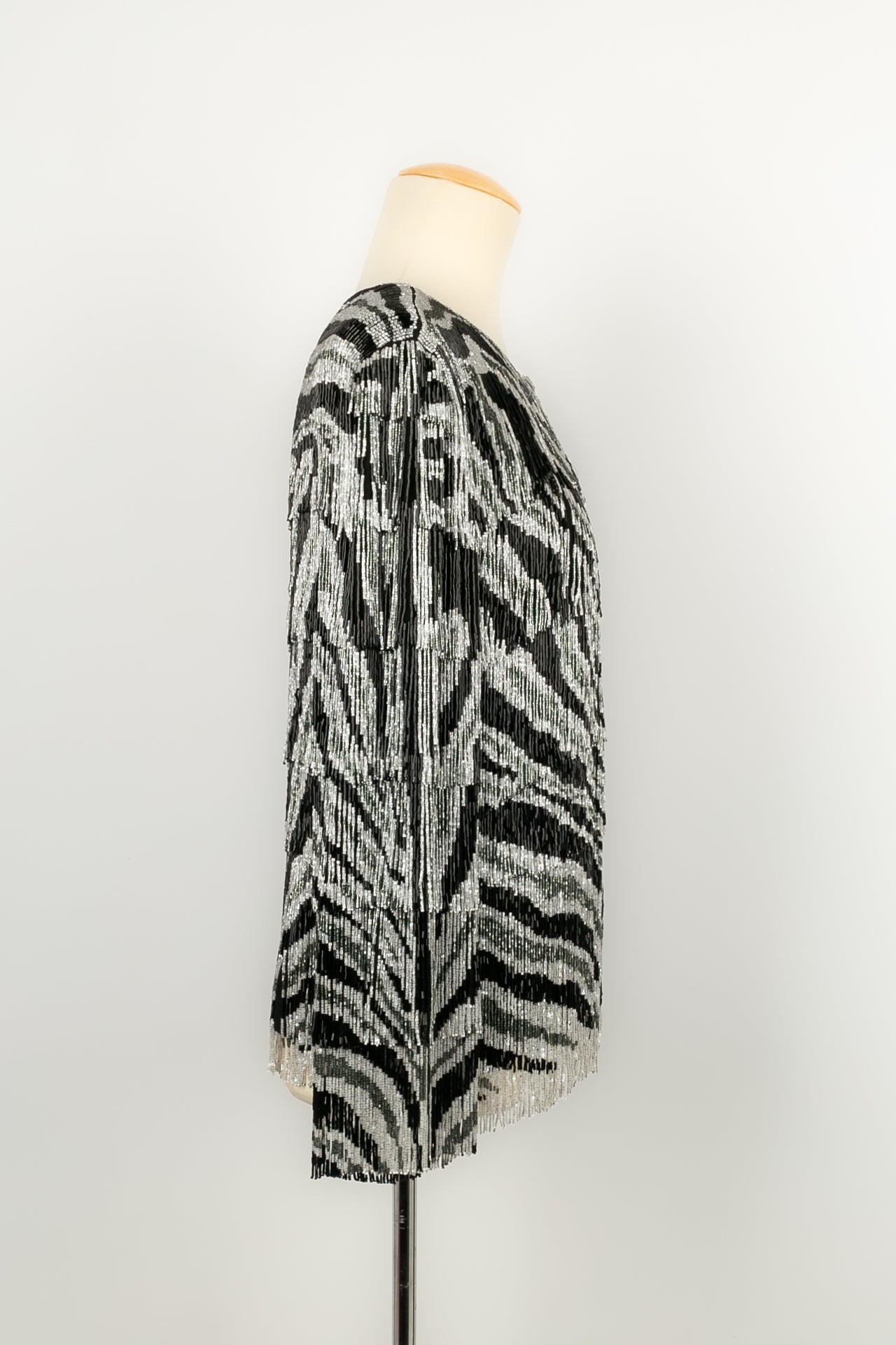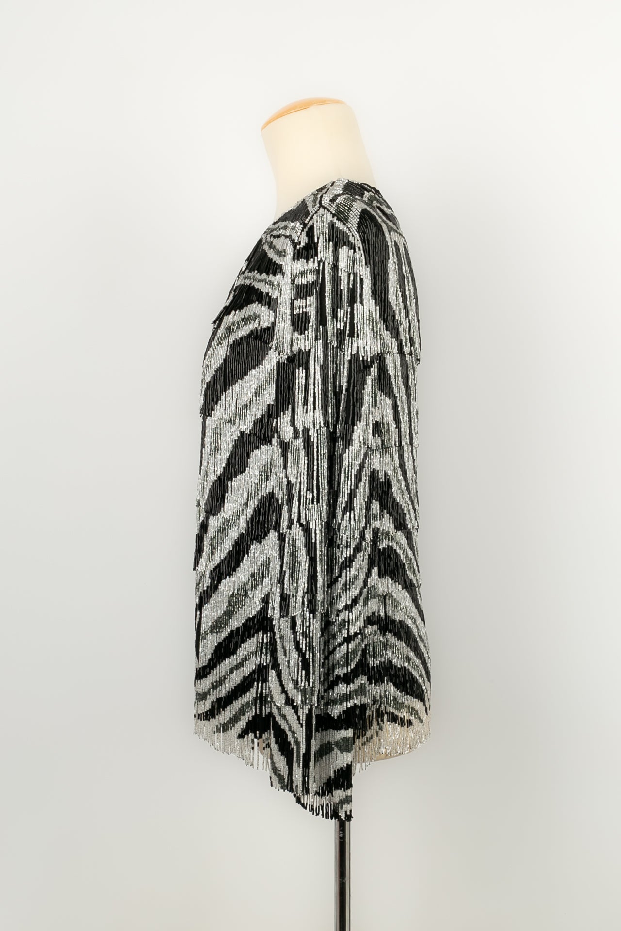 PUCCI -(Made in Italy) Veste en crêpe de soie noire et perles. Aucune étiquette de taille, elle convient à un 36FR/38FR. Collection Automne-Hiver 2013 sous la direction artistique de Peter Dundas.