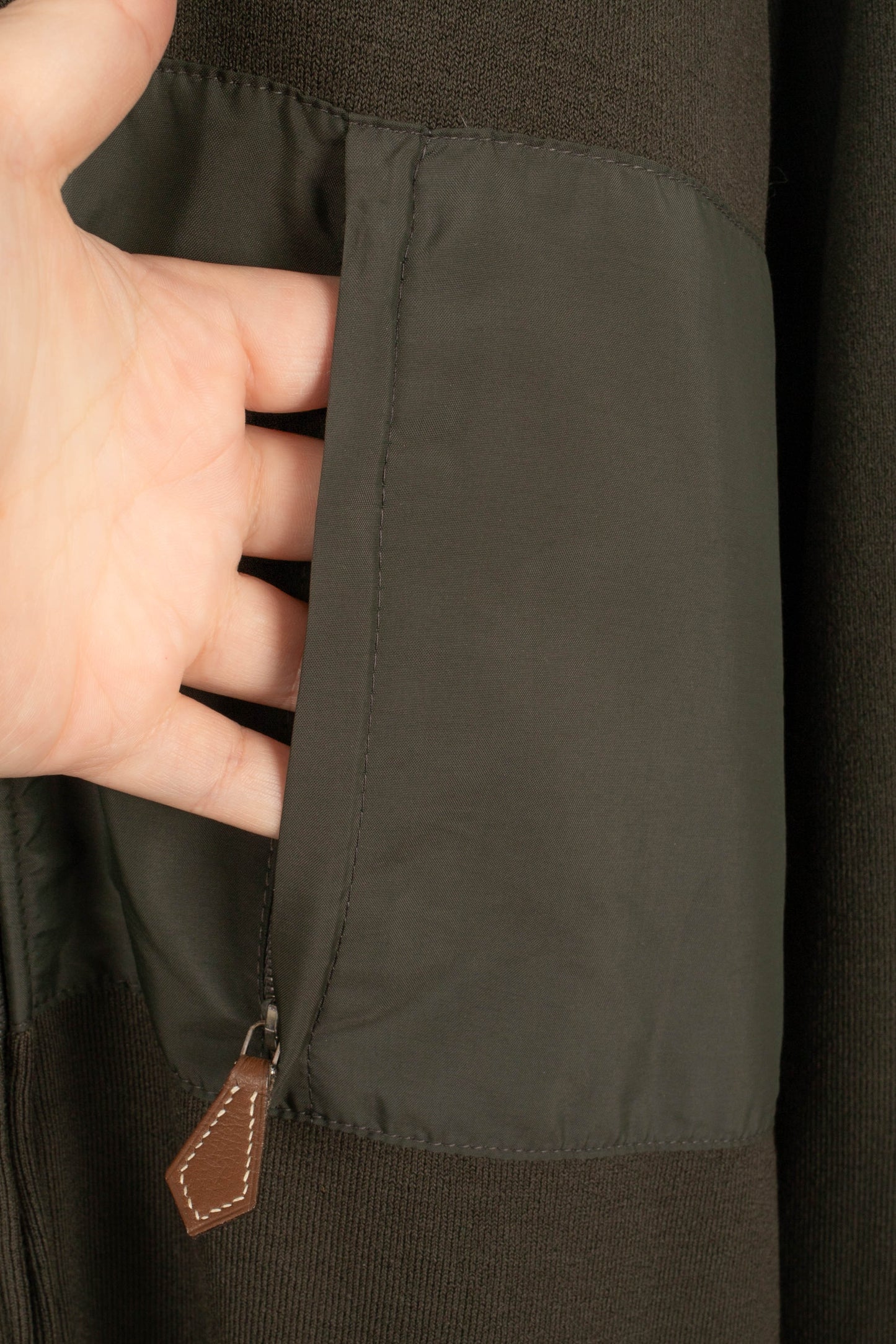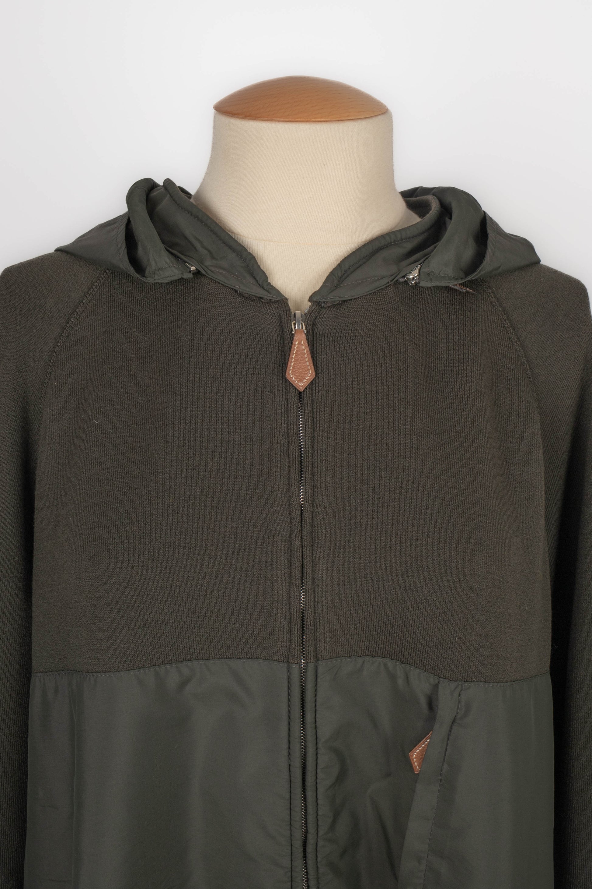 HERMÈS -(Made in Italy) Veste zippée kaki. Taille L.